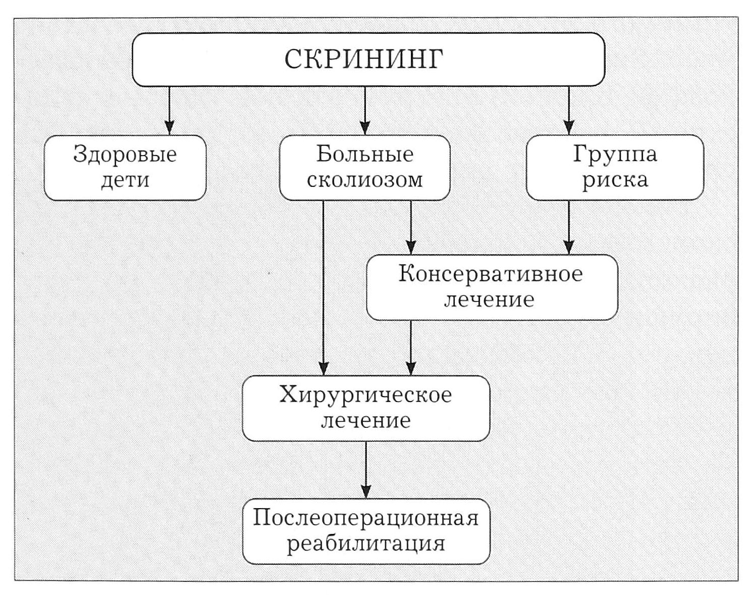 В общем виде наша концепция раннего выявления и лечения идиопатического сколиоза представлена на рис. 7.