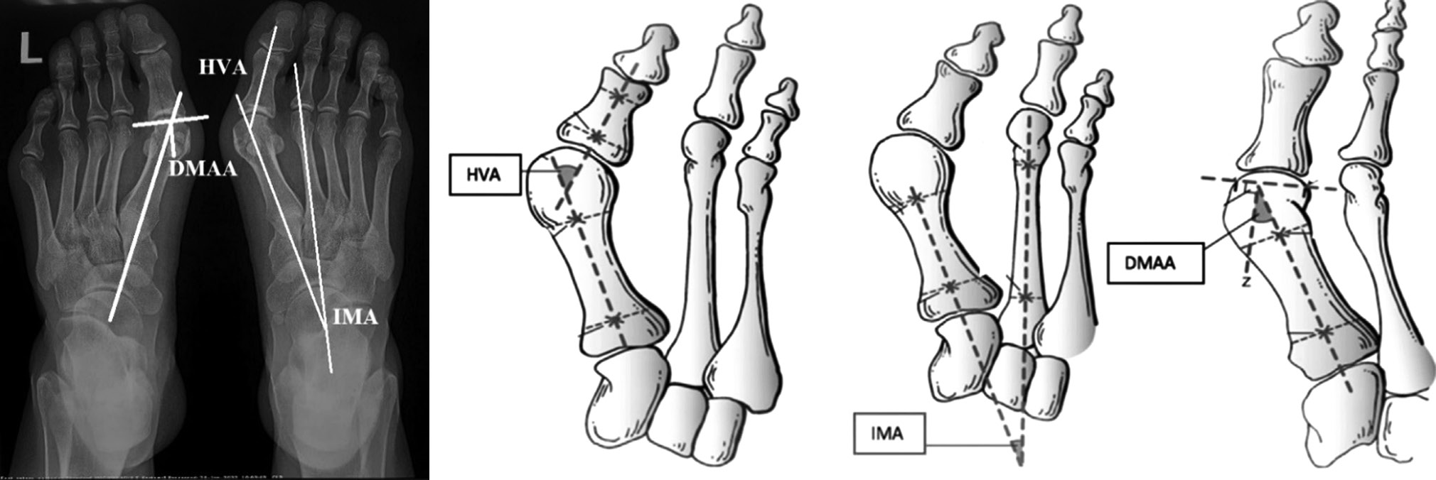 Note. DMAA — distal metatarsal articular angle, HVA — Hallux valgus angle, IMA — intermetatarsal angle.