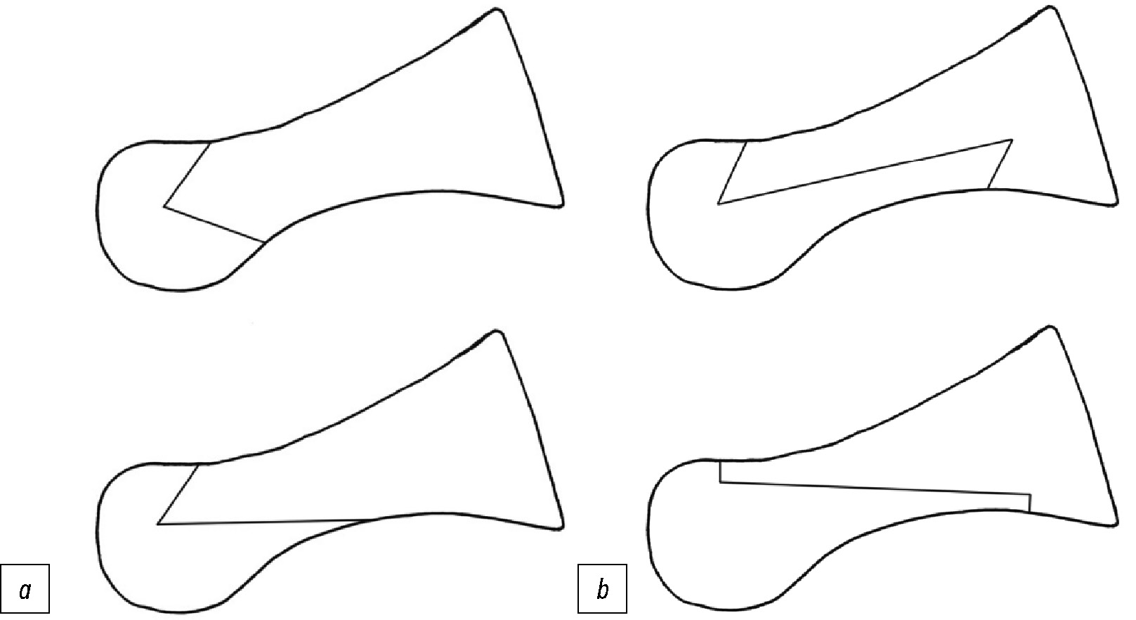 Рис. 2. Шевронная (a) и Skarf-остеотомия (b) [31].