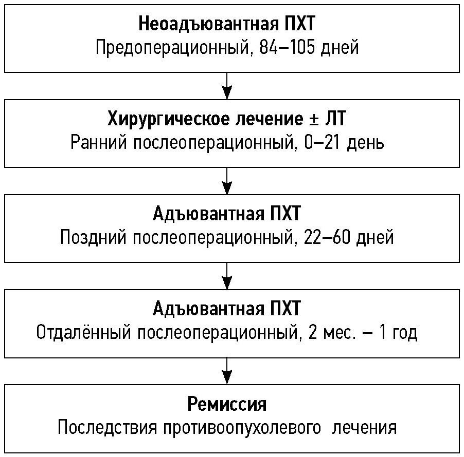 Примечание. ПХТ — полихимиотерапия, ЛТ — лучевая терапия.