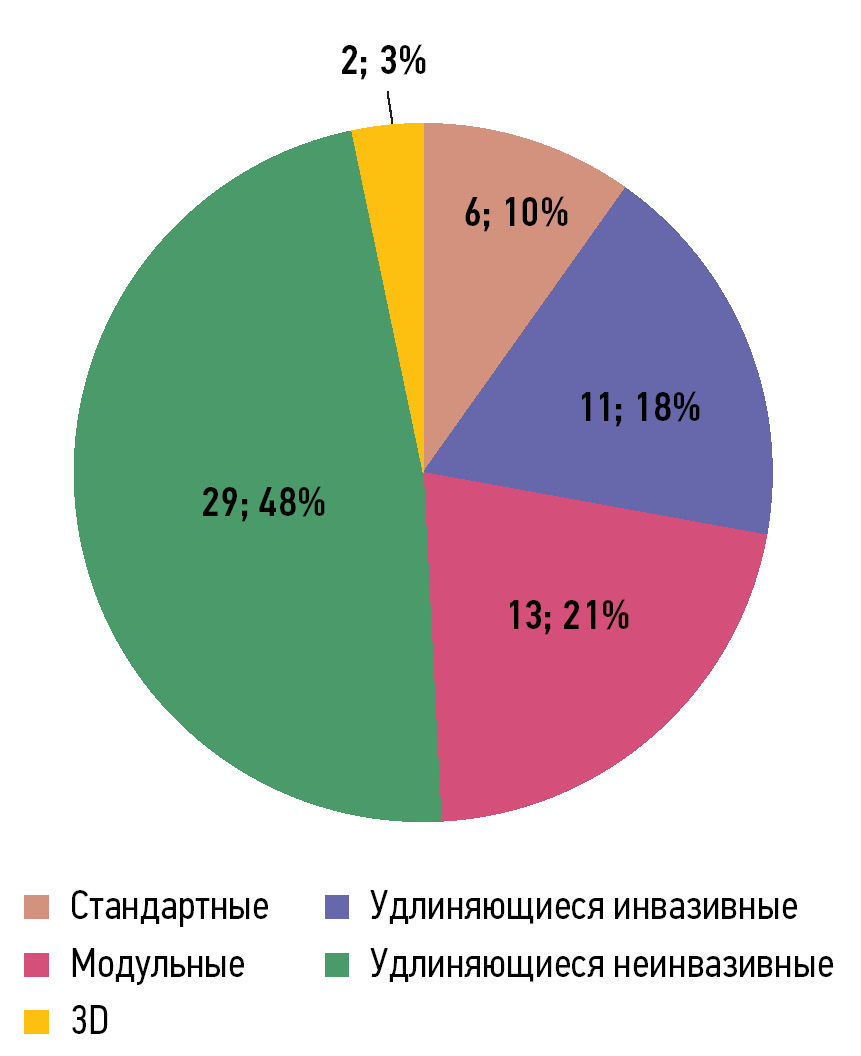 Распределение по конструкции и механизму дистракции показано на рис. 3.