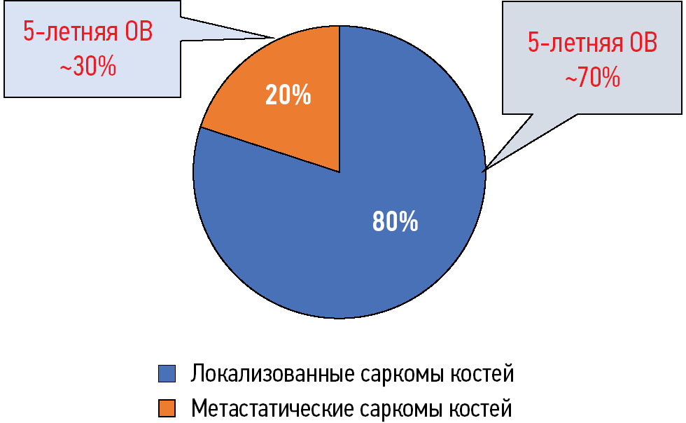 Fig. 1. Current survival rates in high-grade bone sarcomas. ОВ — overall survival.