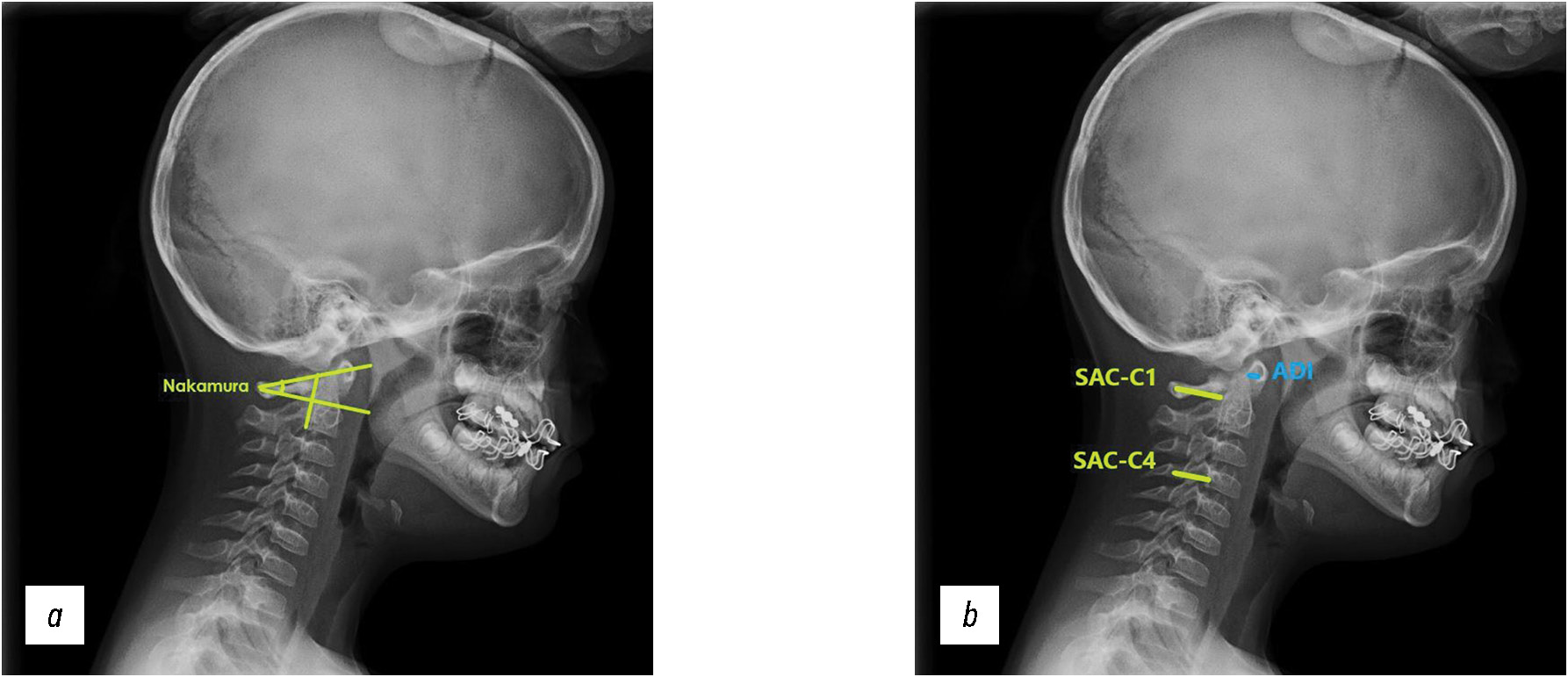 The parameters for atlantoaxial instability assessed in the sagittal plane (Nakamura angle, ADI, SAC–C1, and SAC–C1/ SAC–C4) were also calculated [13, 14]. The methodology for calculating the criteria is presented in Fig. 2. Table 1 presents the description of the parameters and criteria.