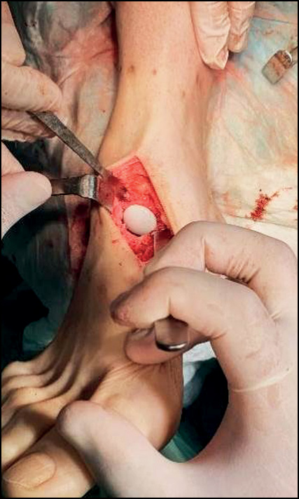 Fig. 7. Intraoperative view of the right foot after implantation of the endoprosthesis of the head of the talus.