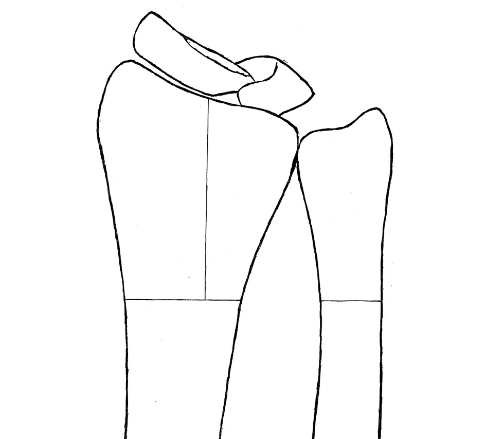Промежуточная колонна образована полулунной ямкой и сигмовидной вырезкой. На неё приходится основная осевая нагрузка, именно ей необходимо уделять основное внимание при оценке конгруэнтности сустава и механической оси запястья.
