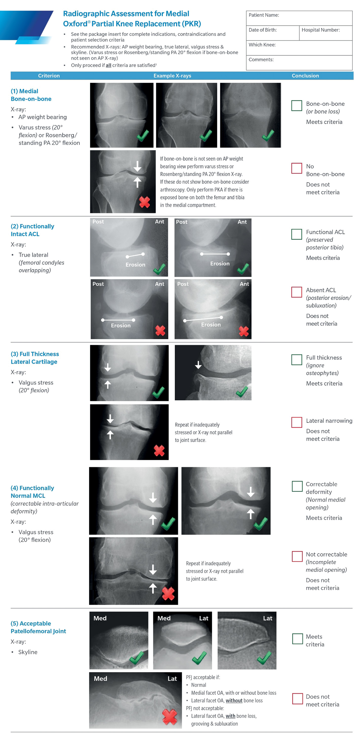 The Oxford radiological decision aid has shown high sensitivity and specificity in predicting the suitability of medial OUKA. Its use is expected to be associated with improved implant durability and better functional outcomes.