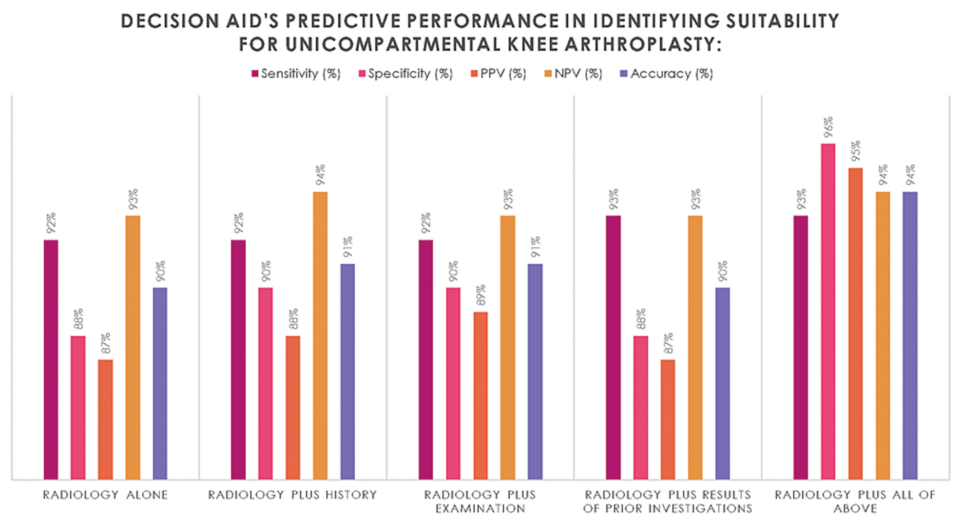 Fig. 3. Decision aid’s predictive performance in identifying suitability for unicompartmental knee arthroplasty.