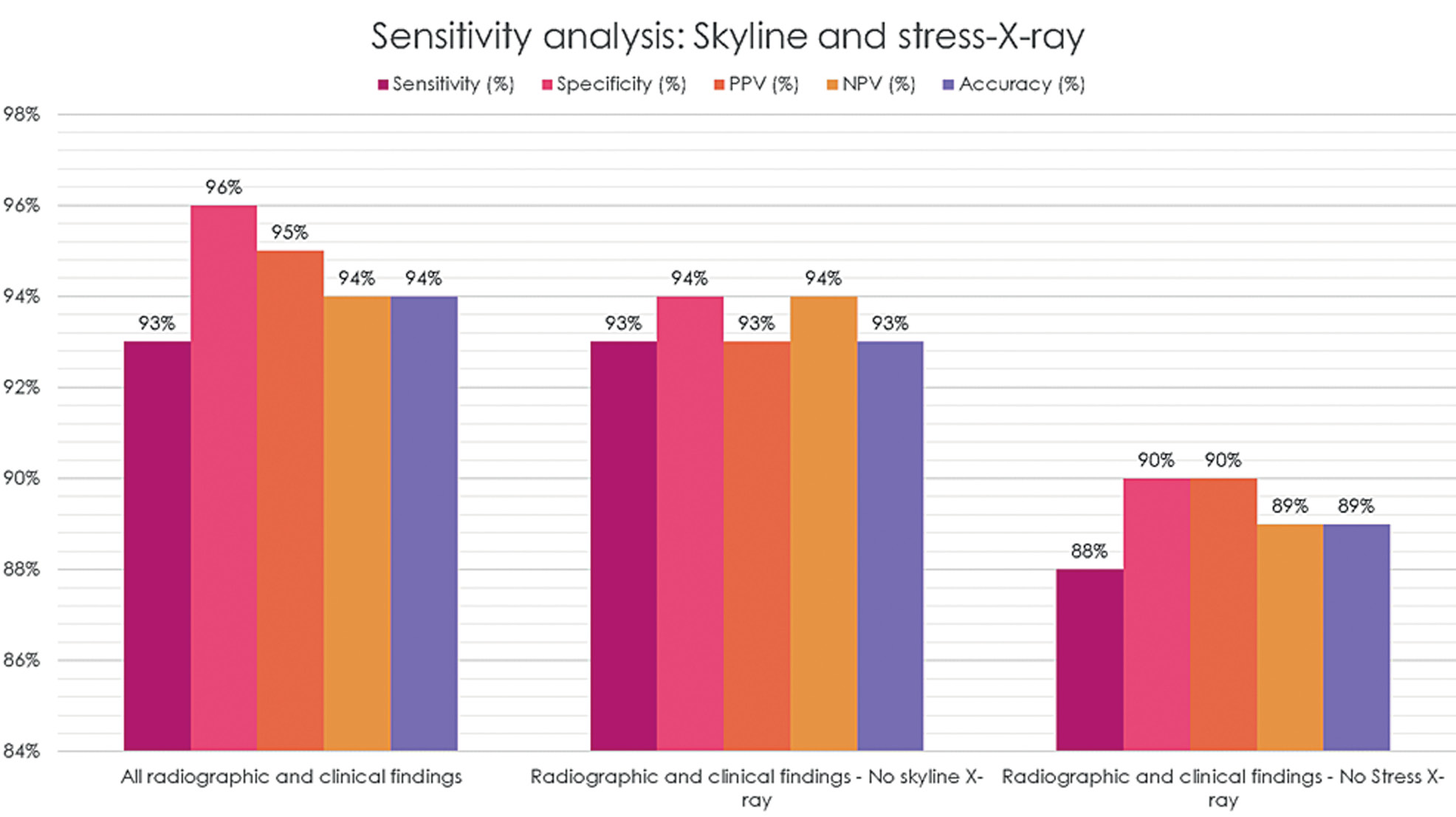 To evaluate the effectiveness of this decision aid, its sensitivity, specificity, positive predictive value, negative predictive value, and accuracy in identifying cases suitable for OUKA were determined (Fig. 3, 4). This evaluation was conducted solely through radiographic assessment.