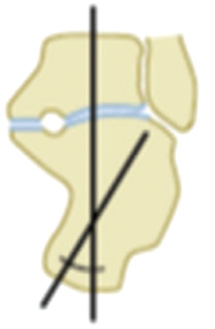 Fig. 1. I-shaped approach according to Gallie. The dotted line indicates the horizontal position of the talus.