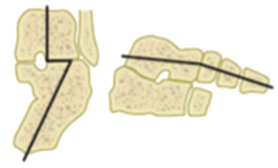 Тип IV: + латеральная дислокация пяточной кости | Дислокация бугристости пяточной кости латерально и краниально (посттравматические деформации, последствия переломов и переломовывихов) | Корригирующая остеотомия вдоль линии перелома с последующим подтаранным артродезом и костной ауто-/аллопластикой | |
