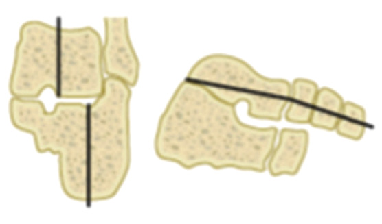 - функциональные рентгенограммы (стоя) обеих стоп в прямой, боковой и проекции Зальцмана (определение большеберцово-таранно-пяточной соосности), при необходимости также выполнялась прямая проекция голеностопных суставов;