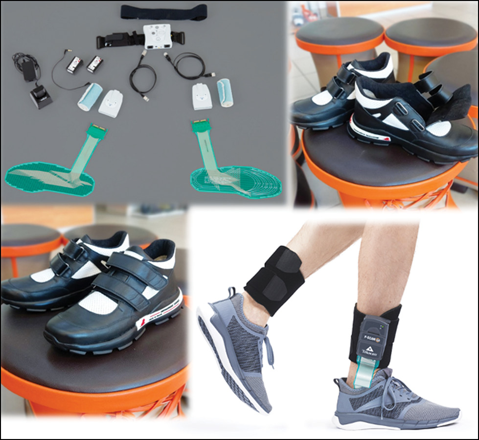Fig. 3. Clinical Gait Analysis F-Scan Mobile, registration module and insoles, “Perseus” experimental standardized footwear.