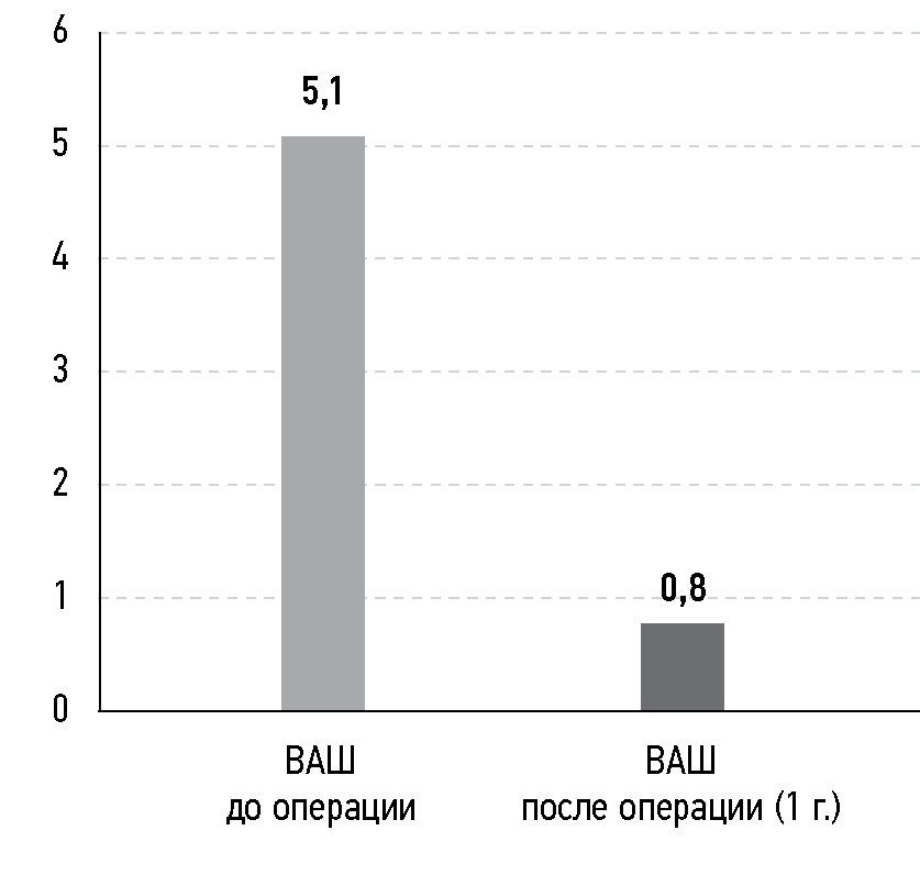 12 мес. после операции | 85 (60–92) | 0,8 (3–0) |