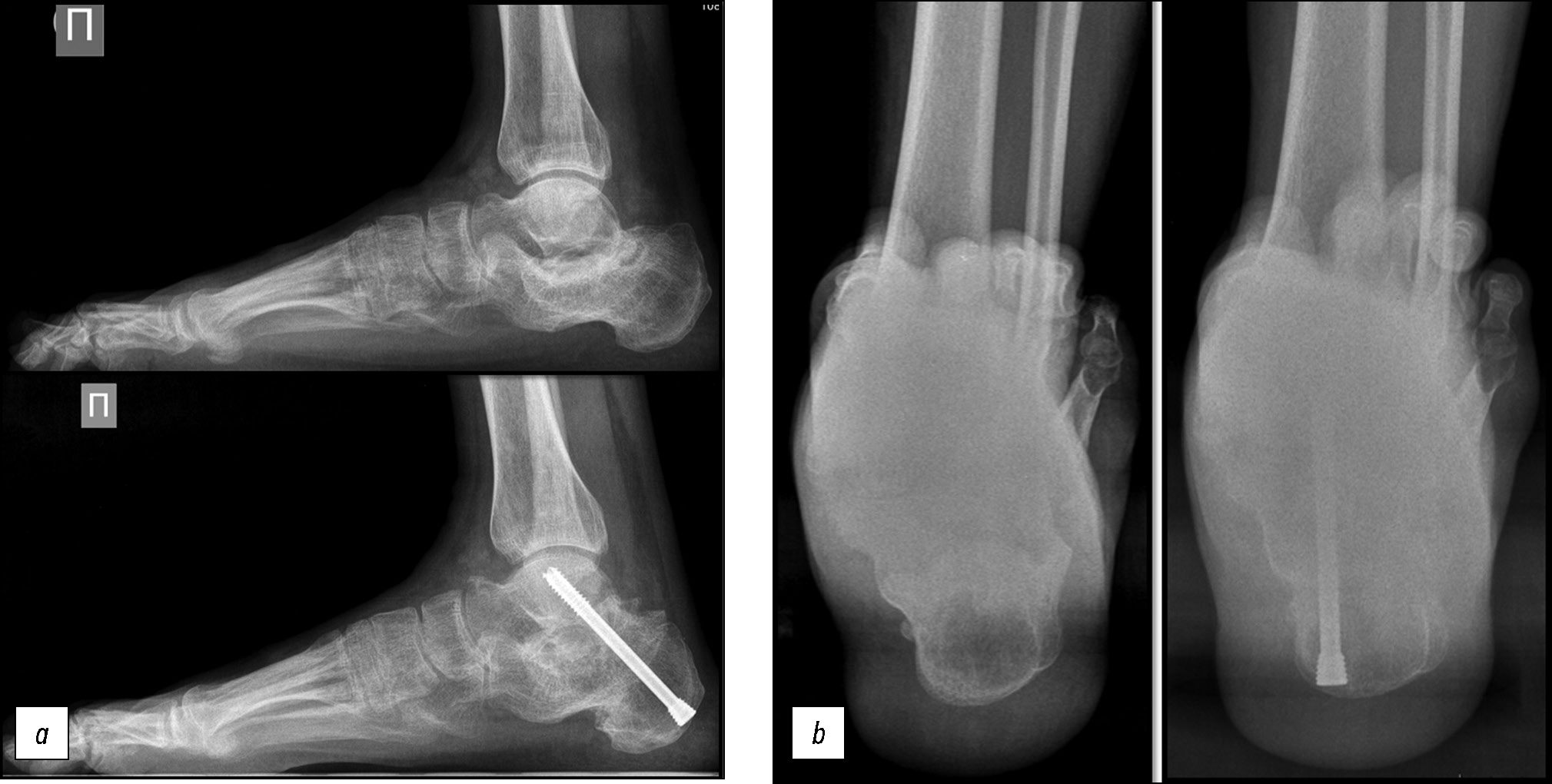 Переломы пяточной кости, внутрисуставные, импрессионные со смещением отломков после консервативного или неадекватного хирургического лечения, могут привести к серьёзной ортопедической проблеме. К сожалению, основную когорту данных пациентов составляют трудоспособные, активные люди в возрасте от 20 до 40 лет. Поздние осложнения сросшихся со смещением внутрисуставных переломов пяточной кости приводят к инвалидизации и представляют сложную клиническую картину [1–6].
