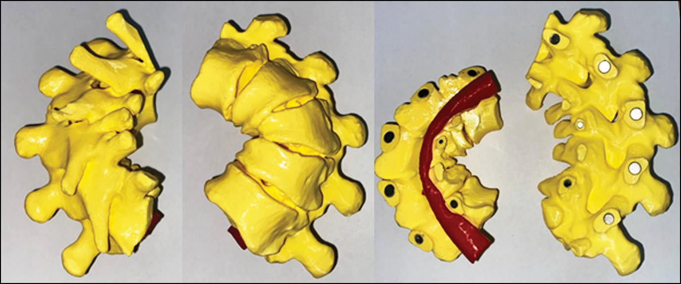 Преимущества 3D-печатной модели для хирургического планирования связаны с реалистичным анатомическим представлением о патологических участках, что помогает лучше и полнее понимать сложную анатомию, траектории проведения и установки винтов, место и объём декомпрессии, необходимую зону декомпрессии.