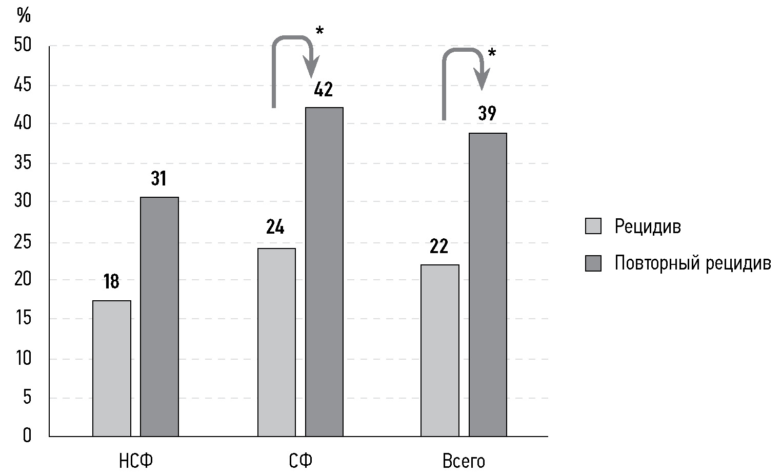 Примечание. * — p <0,05, НСФ — несвищевая форма, СФ — свищевая форма.