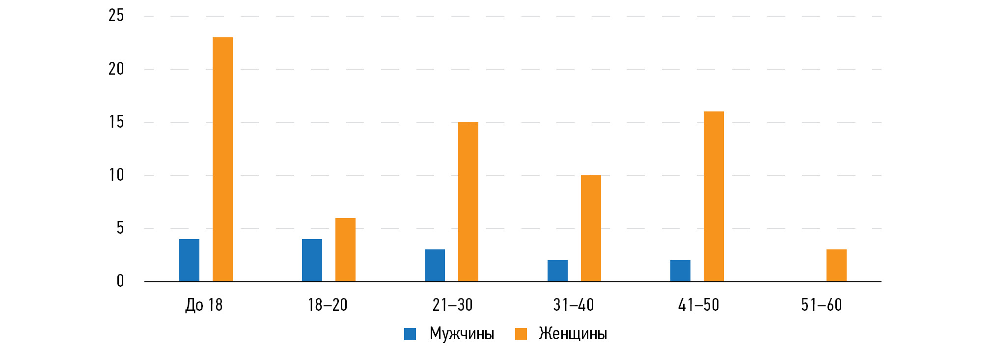 Рис. 1. Половая и возрастная характеристика пациентов (количественное соотношение).