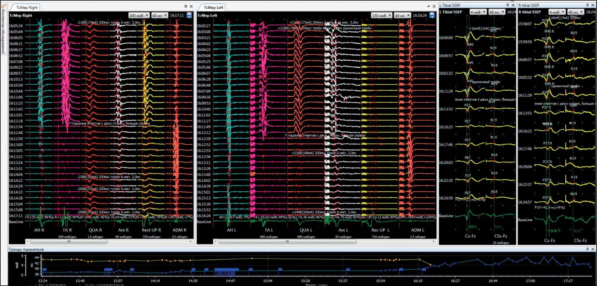 В настоящее время применение интраоперационного нейрофизиологического мониторинга (ИОНМ) при проведении корригирующих операций на позвоночнике является золотым стандартом [1–5], а сохранение целостности нервной системы во время операции имеет первостепенное значение как для хирурга, так и для пациента [6].