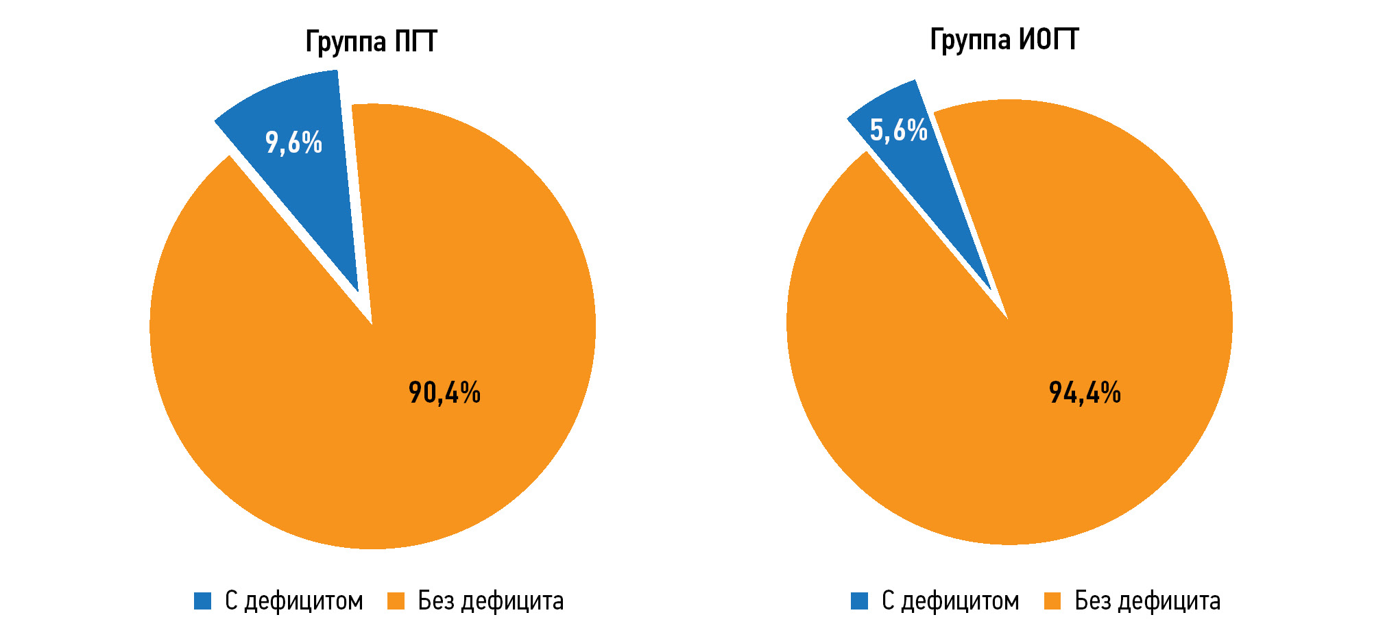 Note. ПГТ — preoperative halo-traction, ОД — the main curve of deformation, ПД — the opposite curve, ТТ — traction test, ИМ — mobility index. Statistically significant values are shown in bold.