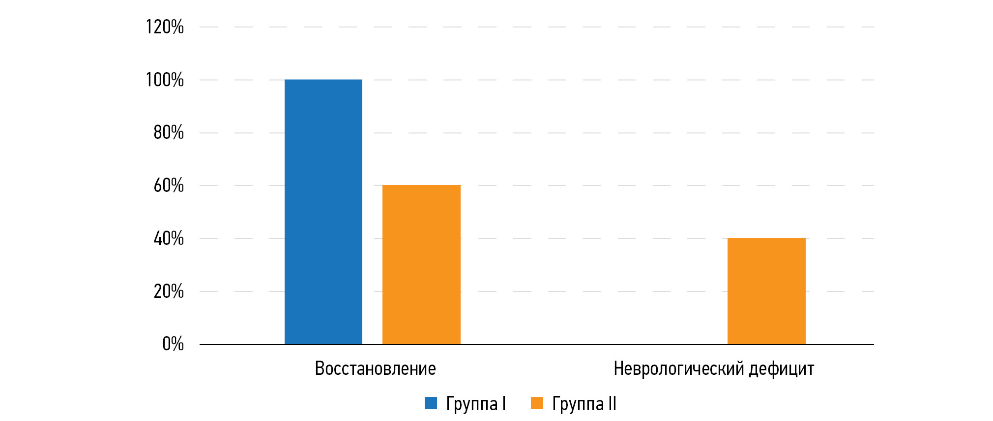 Полученные данные позволяют предположить, что предоперационная гало-тракция даёт возможность подготовить нервные структуры к коррекции тяжёлых деформаций и снизить интраоперационное воздействие на нервную систему, уменьшая риски неврологических осложнений у пациентов с тяжёлыми деформациями позвоночника, по сравнению с одномоментной коррекцией в условиях интраоперационной тракции.