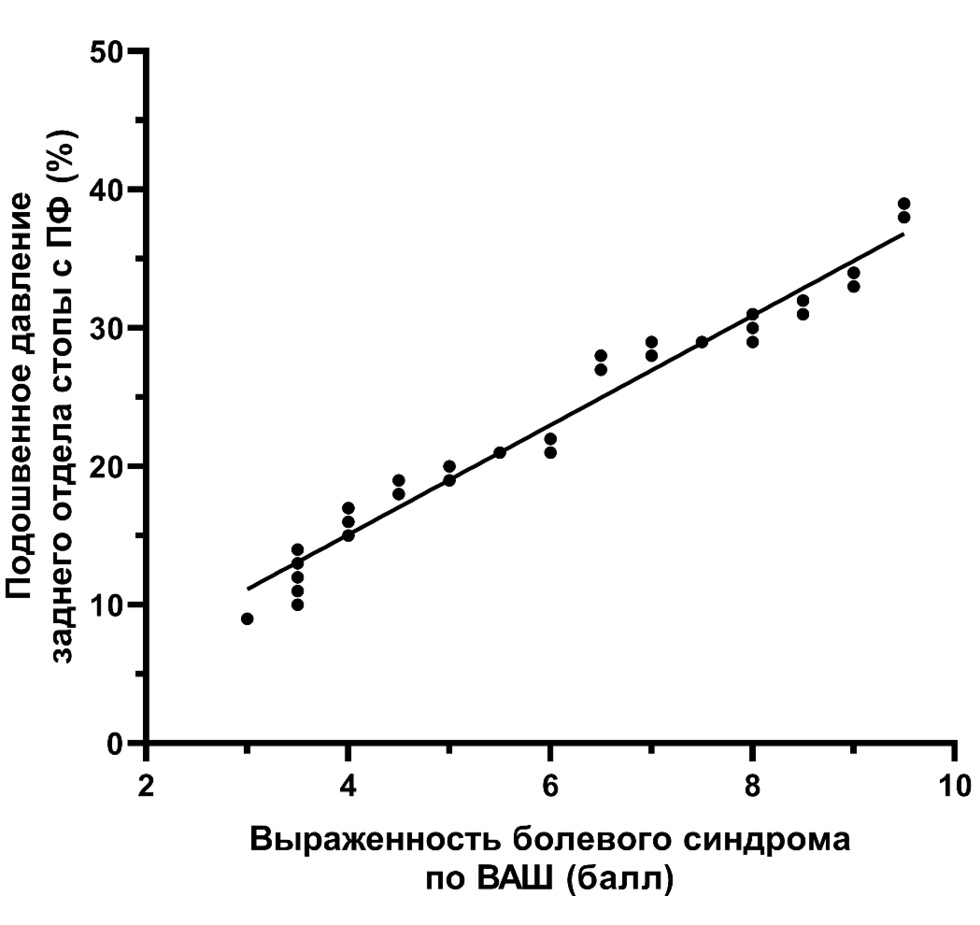 6. Fig. 5. Relationship between plantar pressure in the posterior part of the foot, plantar fasciitis, and pain syndrome according to VAS.