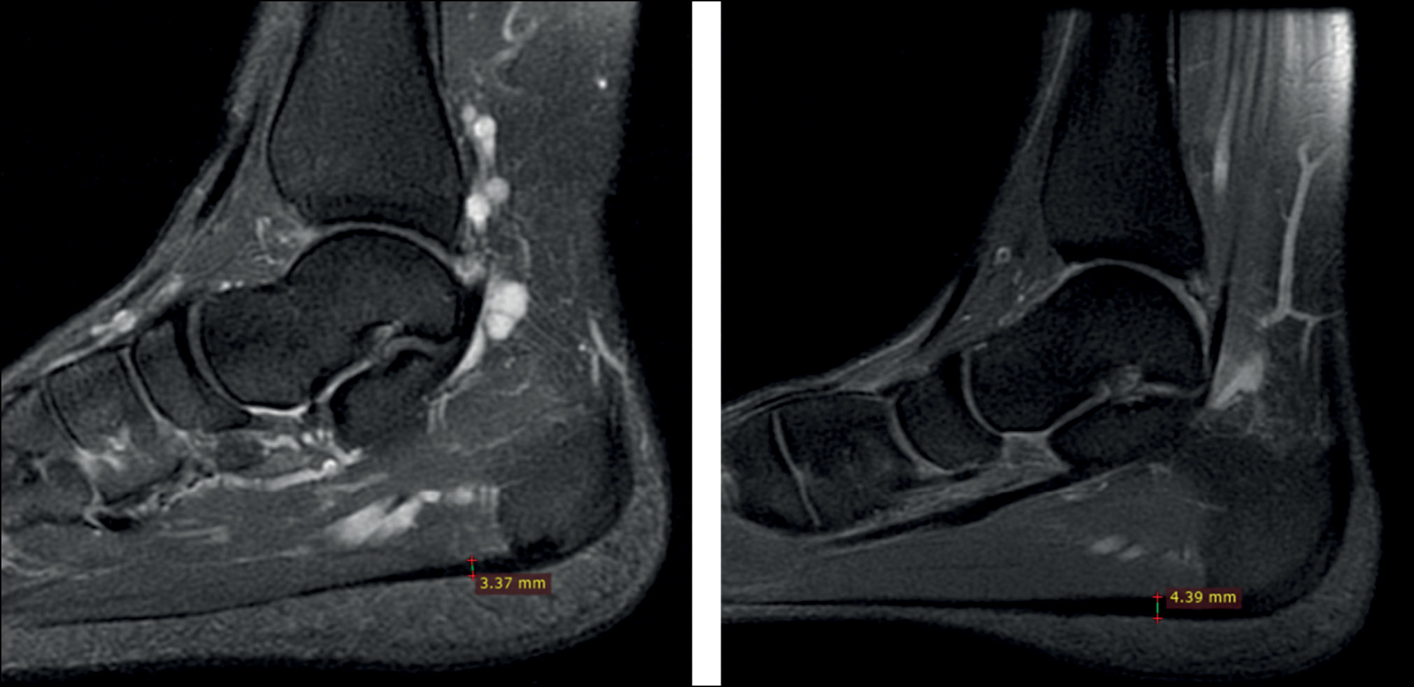 8. Fig. 7. Sagittal slices of T2-weighted images of the feet of athletes with plantar fasciitis.