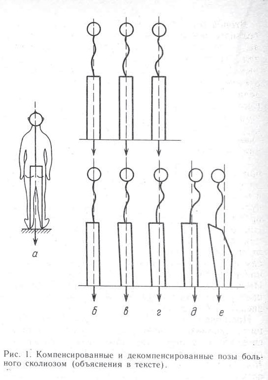 Компенсированная и декомпенсированная вертикальная поза больного сколиозом