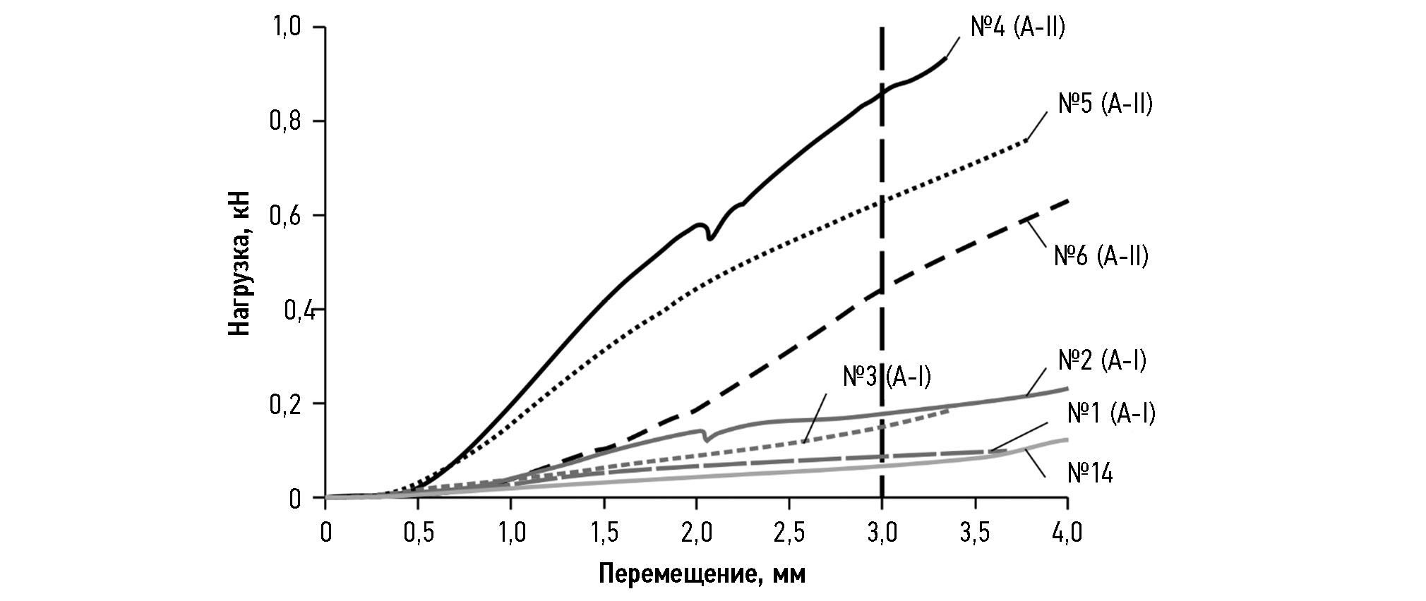 Таблица 1. Нагрузка, соответствующая перемещению 3 мм
