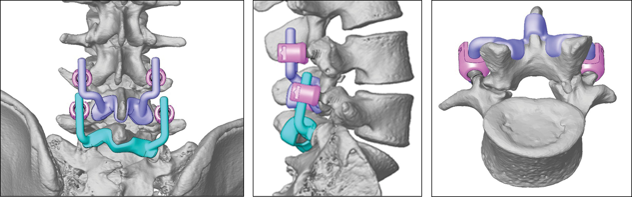 Оперативное лечение двухуровневого билатерального спондилолиза L4-L5 с непрямым восстановлением целостности дужки позвонков с сохранением движений в позвоночно-двигательных сегментах возможно успешно выполнять с использованием персонализированных имплантатов, изготовленных с применением аддитивных технологий. Одним из важных преимуществ применения индивидуально изготовленных фиксирующих устройств при многоуровневом спондилолизе является возможность предоперационного планирования с использованием компьютерного моделирования и предотвращения тем самым контакта между имплантатами при движениях.