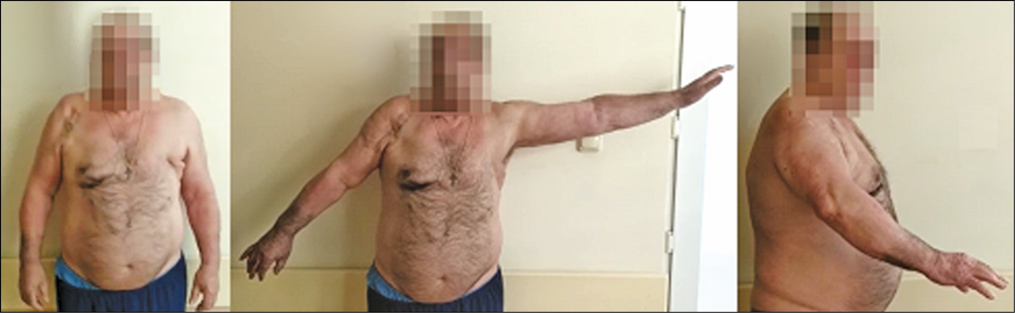 4. Fig. 3. Appearance of patient S., hypotrophy of the deltoid muscle, limited range of motion in the shoulder joint.