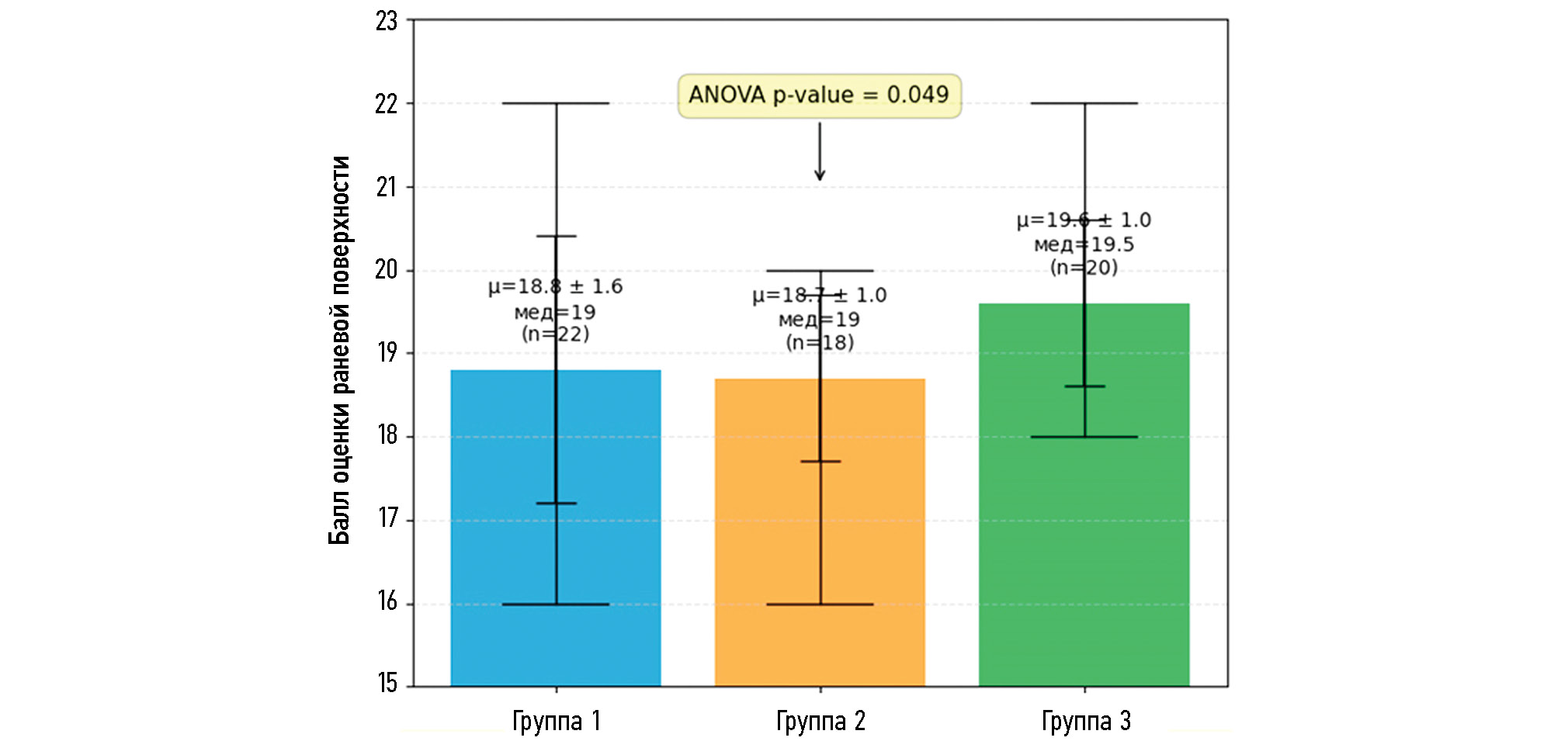 Рис. 1. Оценка раневой поверхности. Сравнение средних значений, n=60.