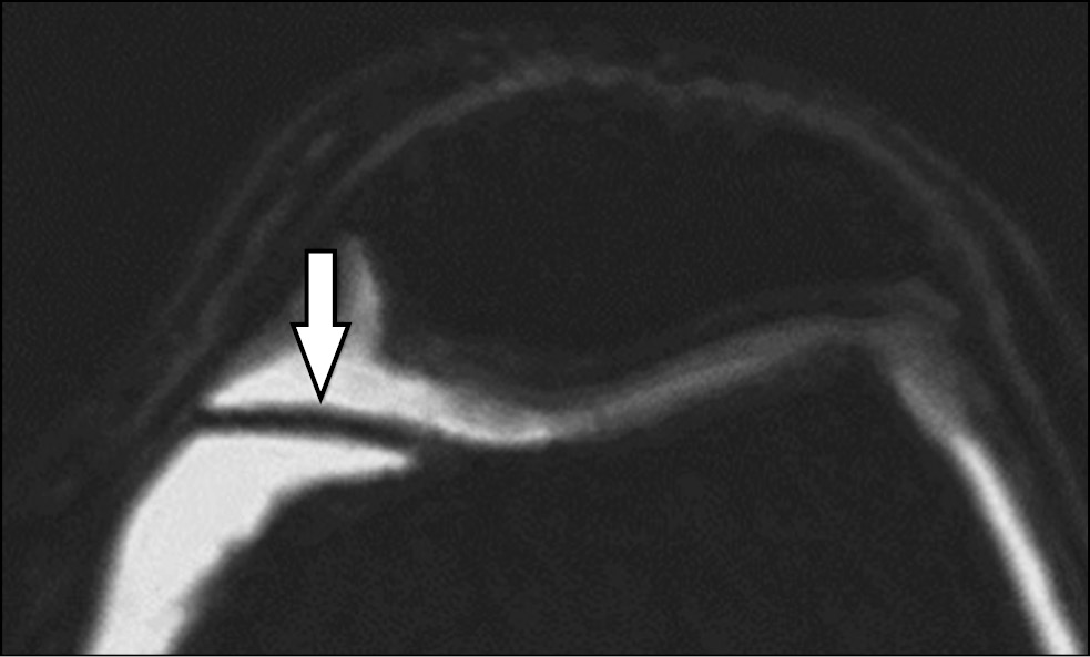 Fig. 1. A picture of the mediopatellar synovial fold obtained using magnetic resonance imaging