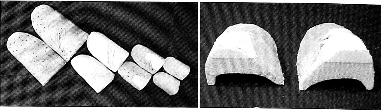 В детской поликлинике ЦИТО применяется методика раннего амбулаторного функционального лечения врожденной косолапости с помощью изделий из полимерных материалов, предложенная в 1973 г. В.Я. Виленским [12]. Она основана на особенностях анатомического развития проводящих путей у новорожденных и использовании свойств полимерных материалов с закрытыми порами (вспененная резина и др.). Кожные тактильные анализаторы у новорожденных функционируют с первых дней жизни. При раздражении кожных анализаторов подошвенной поверхности стопы и пальцев ребенок реагирует сгибательно-разгибательными движениями в голеностопном суставе. Непрерывные некоординированные движения в соответствии с анатомическим развитием пирамидных проводящих путей к 3~4 мес приобретают определенную направленность. Эту функциональную особенность развития ребенка можно использовать для коррекции деформации.