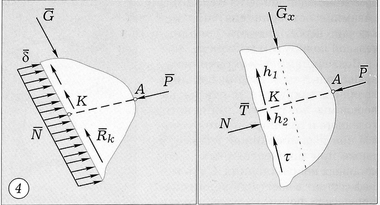 Рис. 4. Схема распределения сил на отломок (пояснения в тексте).