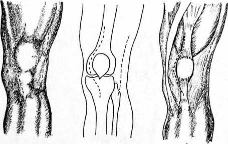 Рис. 3. Передневнутренний доступ к коленному суставу (по Пайру) и наружнобоковой доступ.
