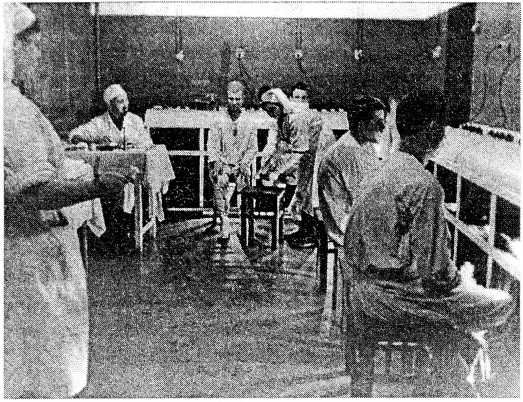 В небольшом отделении помещались военнопленные. Их первое время было мало, и после оказания медицинской помощи они эвакуировались в специальный госпиталь.
