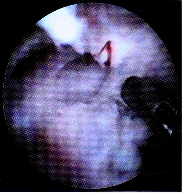 Используя основные и дополнительные артроскопическиедоступы,, мы получили возможность во всех случаях визуализировать все внутрисуставные структуры,, уточнить ложализащию и степень внутрисуставных повреждении и провести оперативное лечение с помощью артросжопической техники.. Были выполнены следующие виды оперативного лечения: удаление внутрисуставных тел, шейвирование участков повреждения хряща с целью удаления детенержттпвно-виененной хрящевой ткани и сглаживания суставных поверхностей, иссечение множественных посттравматических спаек (рис.. 6-8).