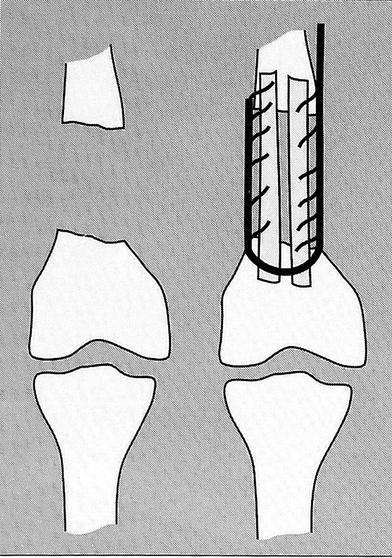 Рис. 3. Схема пластики сдвоенным малоберцовым васкуляризованным трансплантатом.