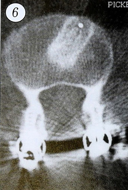 Если мы хотим достичь уровня T12-L1 (рис. 5), спицы Steinmann должны быть установлены на более высоком уровне для эффективного смещения содержимого брюшного мешка. По нашему опыту, левая ножка диафрагмы легко определяется, она не служит препятствием для переднелатерального левого доступа к позвоночнику, но при необходимости может быть пересечена после предварительного гемостаза. На этом этапе — перед началом удаления диска или корпорэктомии — делают снимки в передней и боковой проекциях. Поясничный валик фиксирован в определенном положении.