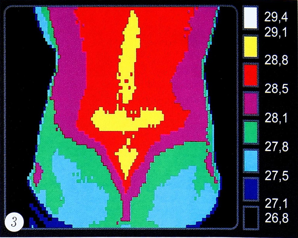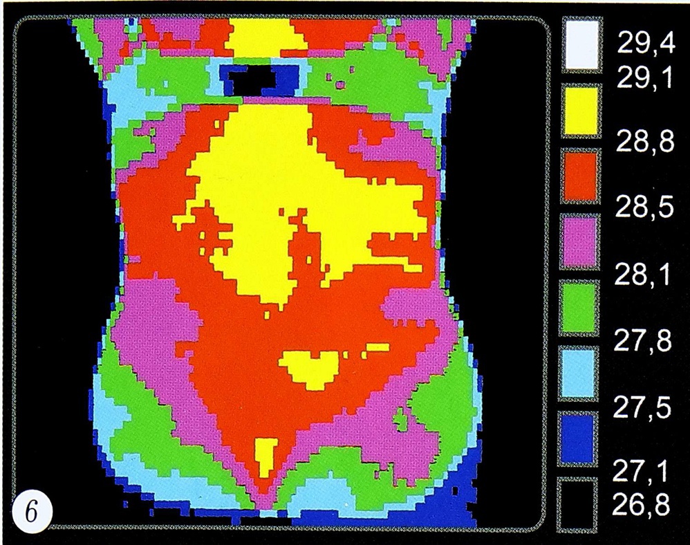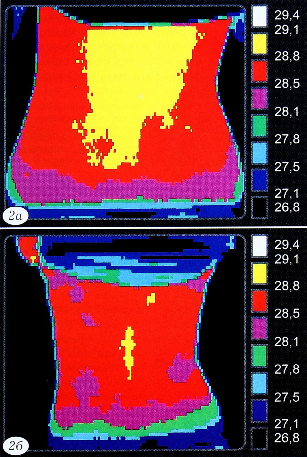 Термографические исследования проводились на 10-цветном термографе фирмы AGA-780 (Швеция) с компьютерной приставкой ТС-800 для обработки термоизображений.