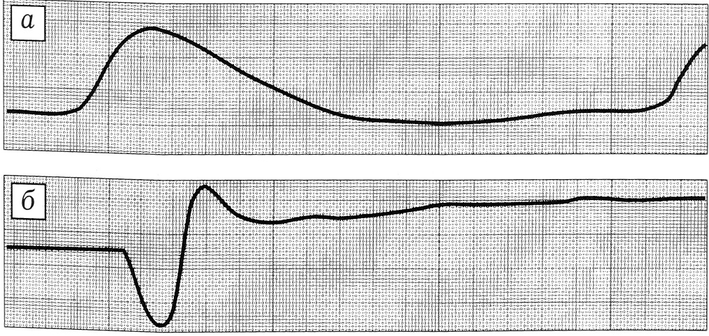 Рис. 1. Артериальная (а) и венозная (б) флоуграммы.
