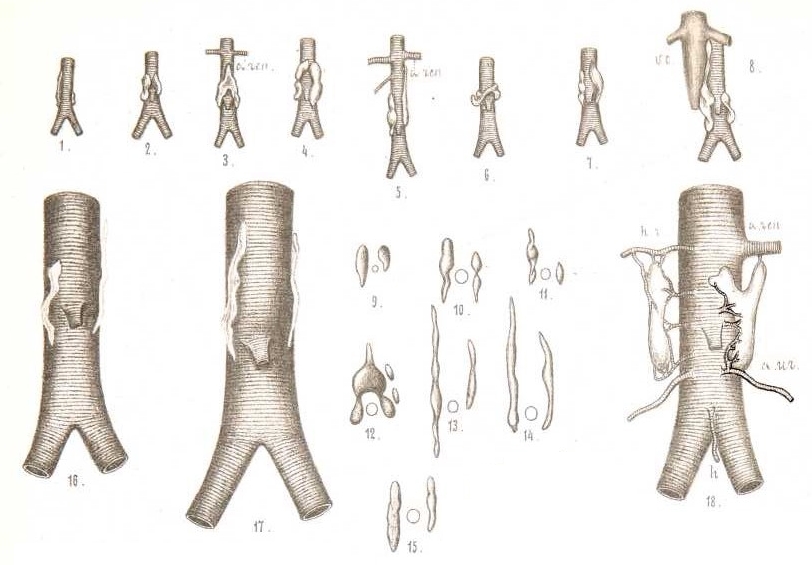 Подробности распредѣленія артеріальныхъ стволиковъ во всѣхъ изслѣдованныхъ случаяхъ приведены въ сводной таблицѣ.