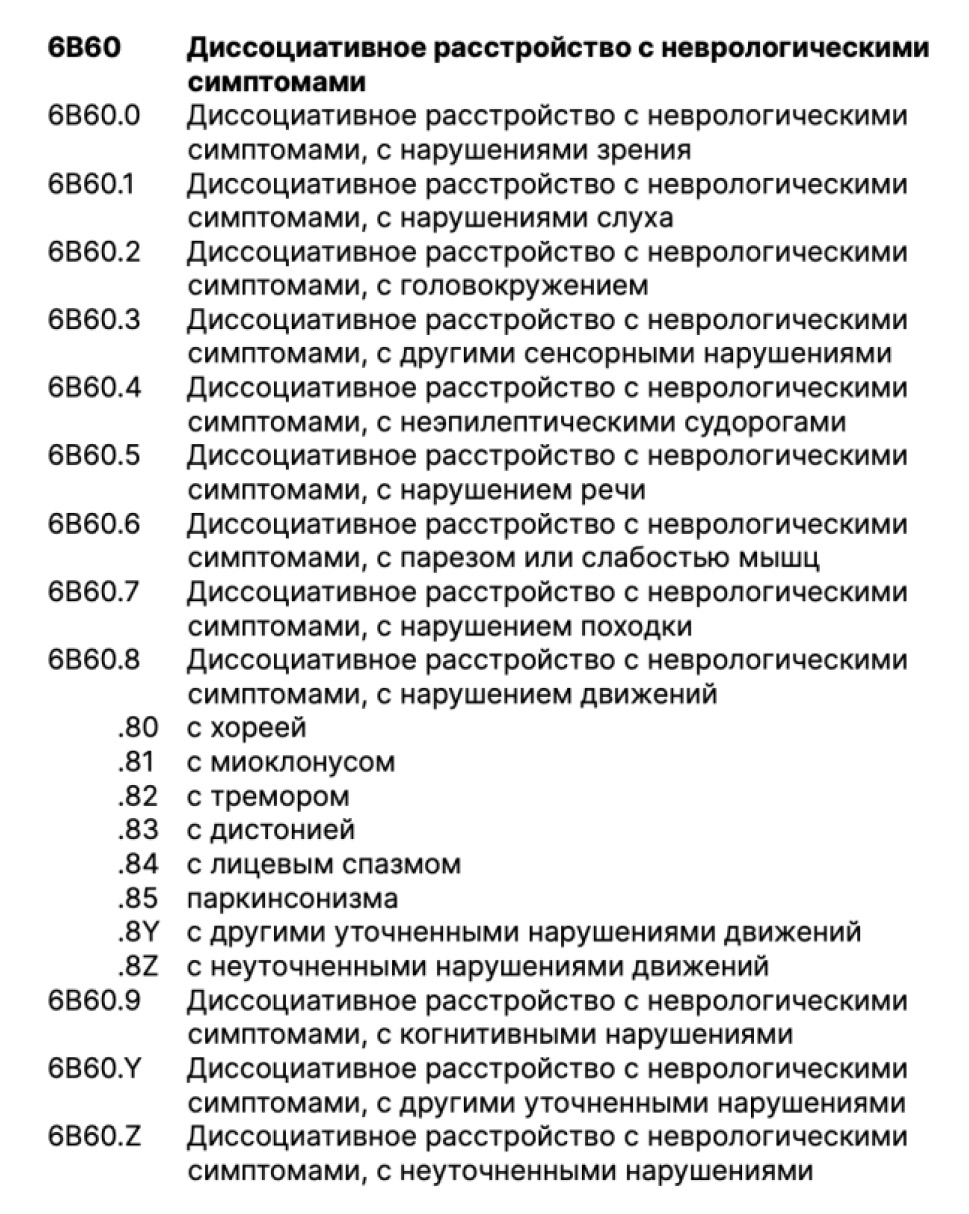 Fig. 2. Dissociative disorder with neurological symptoms (according to the International Classification of Diseases, 11th revision) [17]