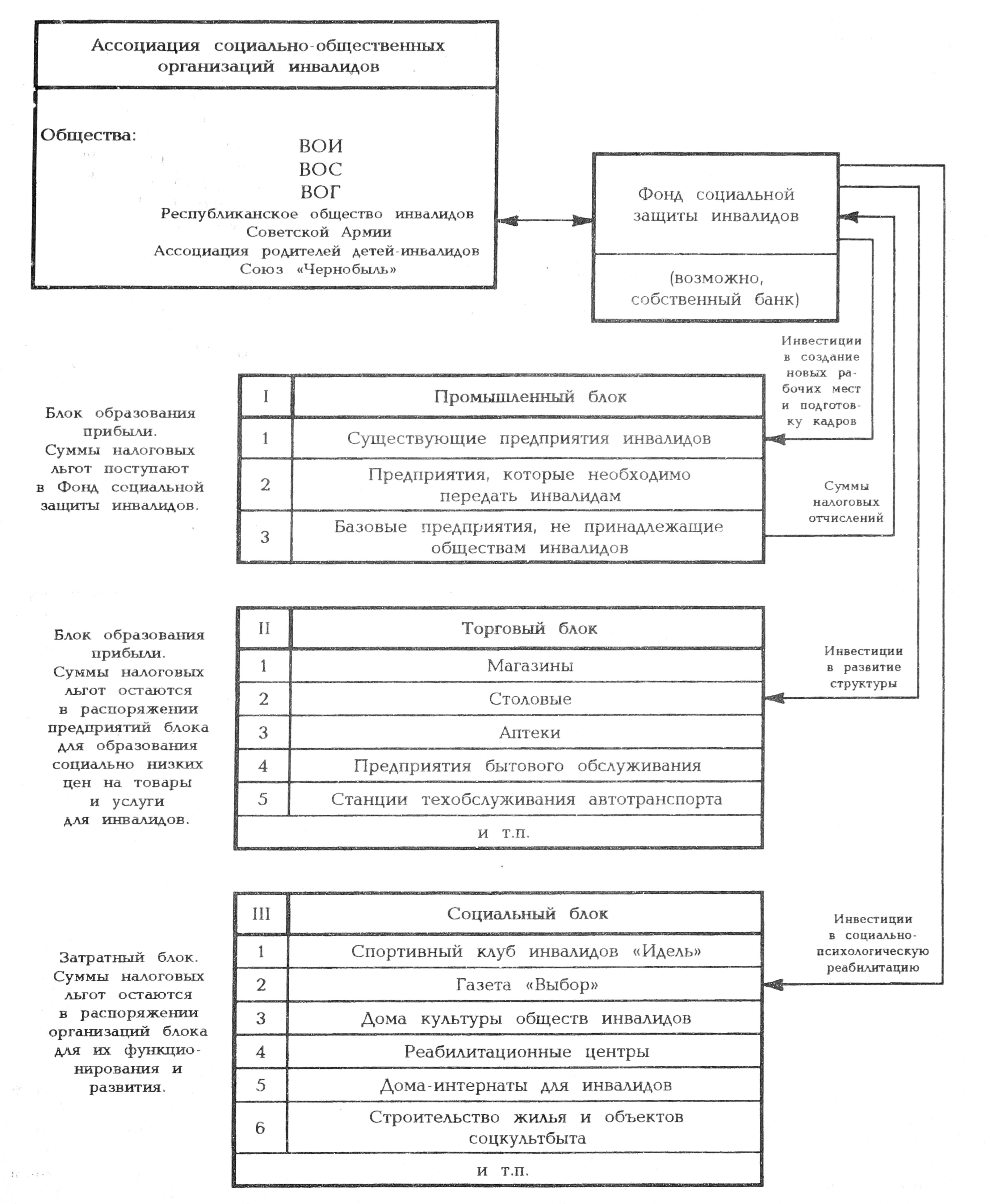 Большим событием в жизни инвалидов республики стало создание по инициативе нашего президента М.Ш. Шаймиева в декабре 1992 г. Ассоциации социально общественных организаций инвалидов Республики Татар стан, в которую вошли ВОИ, ВОС, ВОГ, Республиканское общество инвалидов Совет ской Армии, Ассоциация реабилитации детей инвалидов, Союз «Чернобыль» РТ, объединившие около 200 тыс. ивалидов. Эта структура взяла на себя координацию в решении некоторых общих проблем инвали дов, таких как организация новых рабочих мест, развитие самодеятельности, творческой активности, спорта, создание единого печатного органа, подготовка закона об инвалидах РТ, и в конечном счете — участие в формировании и реализации государственной программы поддержки инвалидов. Кроме того, создание на уровне республики специальной социально экономической ин фраструктуры для инвалидов со специализи рованными и неспециализированными, но работающими на нужды инвалидов предпри ятиями, сетью магазинов, столовых, аптек, предприятий бытового обслуживания, реабилитационными центрами. В ее основу положен принцип льготного налогообложения по всему налоговому полю предприятий, входя щих в инфраструктуру, за счет чего пред полагается снижение стоимости товаров и услуг для инвалидов.