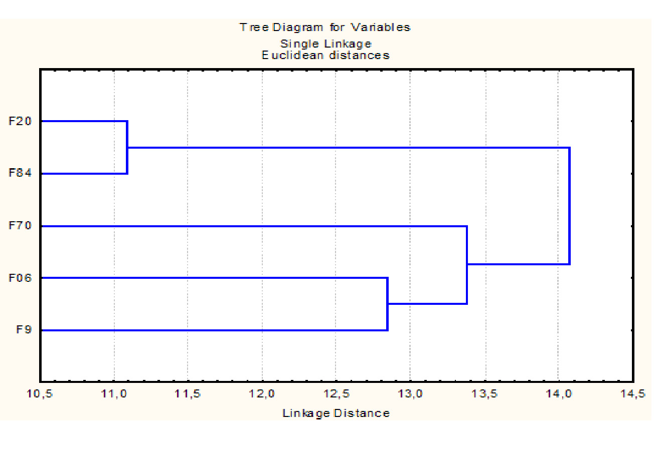 The obtained data were examined statistically (cluster analysis). The research results were processed using Statistica 6.0 and MS Excel 2020 programs.