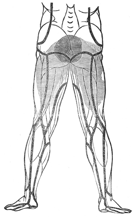 Какъ видно, разстройство чувствительности на тыльной поверхности простирается довольно симметрически на оба бедра и нижннюю часть сѣдалищной области; спереди же анэстезія имѣется только на правой сторонѣ и простирается ио верхней части бедра за plica inguinalis и на соотвѣтственную половин у лобковой области.