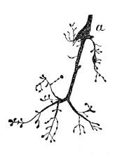 Поперечный разрѣзъ; а—вѣтвь задняго рога, дающая тонкія варикозныя развѣтвленія.