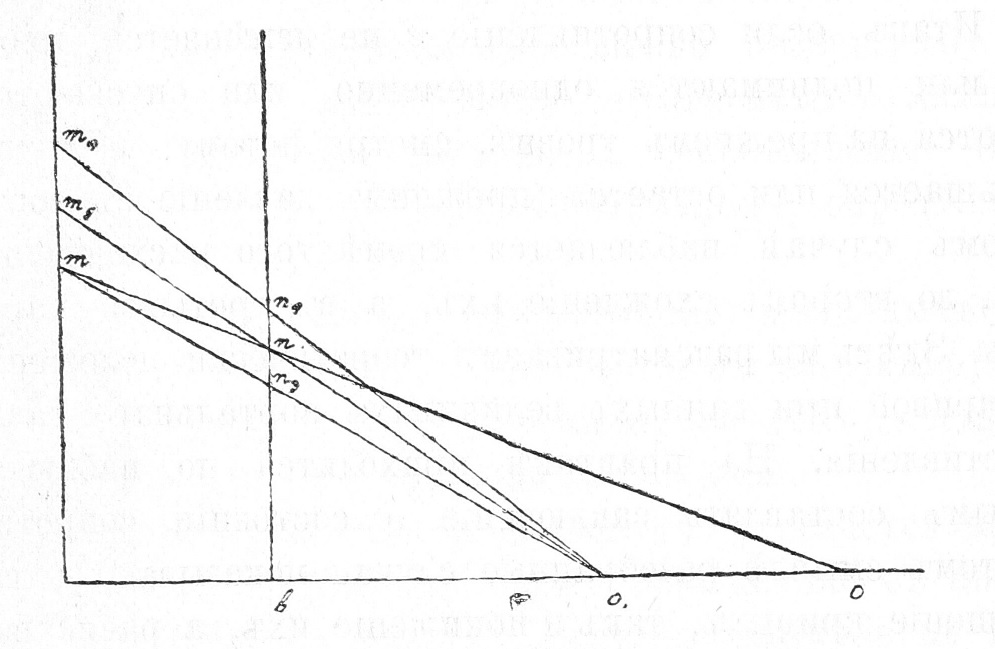 Типъ 4. Наконецъ, точка т можетъ занять такое положеніе (рис. 3), что прямая пересѣчетъ прямую bn въ точкѣ которая лежитъ ниже точки п. Графически этотъ случай представитъ расхожденіе кривыхъ, причемъ верхняя кривая поднимется, а нижняя опустится.