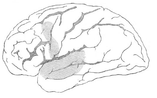 Еще старые авторы, изучавшіе сосудистую систему головного мозга, пришли къ выводу, что эта система отличается весьма существенными недостатками. Еще Heubner и Duret при помощи инъекцій убѣдились, что если сосуды коры и не принадлежатъ къ категоріи конечныхъ , то лишь весьма условно. Дѣйствительно, анастомозы между областями различныхъ артерій развиты въ далеко недостаточной степени, а между артеріями малаго колибра ихъ часто и совсѣмъ не существуетъ, такъ что послѣднія соединяются другъ съ другомъ только помощью капиллярной сѣти. Такимъ образомъ, если кровообращеніе будетъ нарушено въ одной изъ нихъ, то сосѣднія не въ состояніи снабжать кровью въ достаточномъ количествѣ тотъ участокъ мозга, который питался ею. Это обстоятельство легко даетъ намъ ключъ къ пониманію, почему такъ часто разстройство кровообращенія мозговой коры выражается строго ограниченными мѣстными или гнѣздными симптомами; вполнѣ удовлетворительно, по моему мнѣнію, оно объясняетъ бѣдность клиническихъ явленій и въ нашемъ случаѣ.