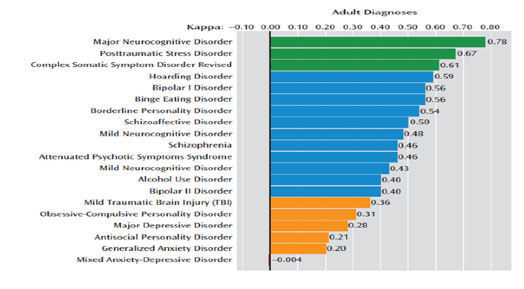 Рис. 2. Согласованность психиатрических диагнозов у взрослых (по Robert Freedman [33])
